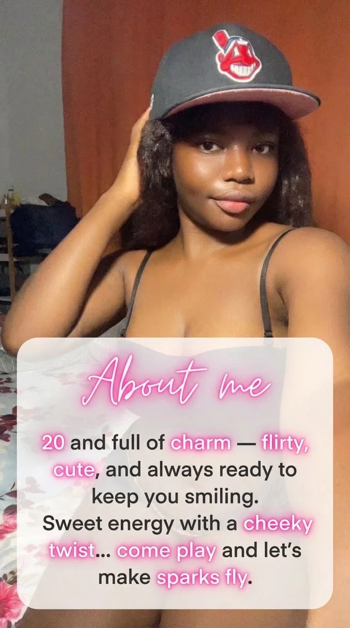 I’m young, pretty, and a sweet rebel who loves to play with temptation. My charm is sugar‑coated mischief, my smile is a tease, and my energy is pure seduction. I’m the babe who mixes honesty with desire — playful enough to make you laugh, daring enough to make you crave more. Come closer… the truth is, I’m irresistible.